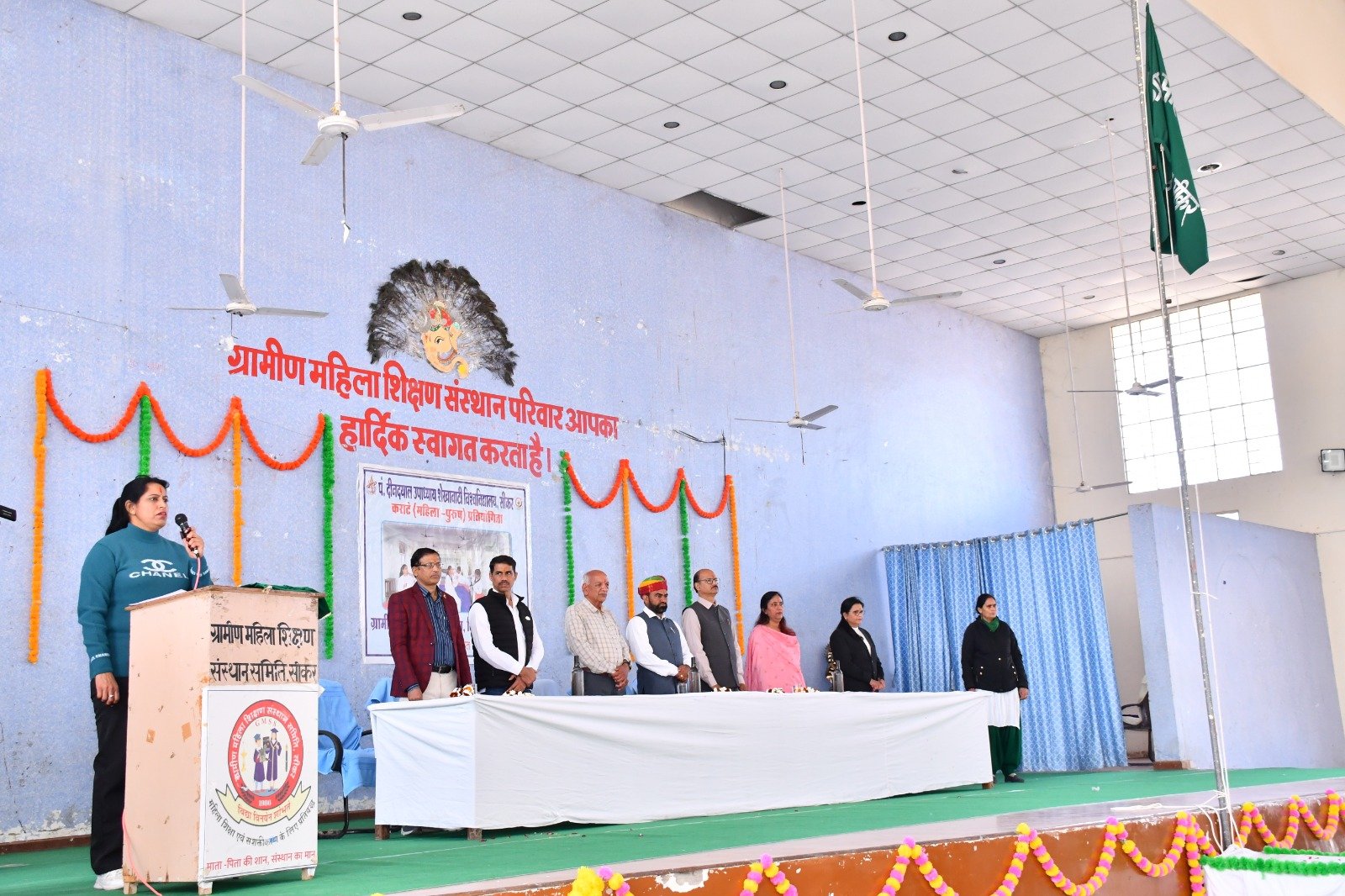 Shri Mahendra Kumar Meel, former teacher and social worker, presided over the program and encouraged the participants to uphold discipline, dedication, and sportsmanship. He also announced a contribution of ₹1,00,000 to support the institution and promote women’s education. The Chief Guest, Shri Surendra Singh Shekhawat, Chief District Education Officer (CDEO), and Special Guest, Prof. Suman Jhuriya, Government Arts College,graced the occasion.